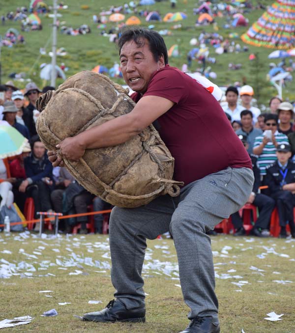 本届民族体育运动会共有来自全州的14个代表队参与角逐。比赛设置了5个大项10个小项的竞赛,有举皮袋、押架、藏式摔跤、拔腰、木桶背水等竞赛项目。